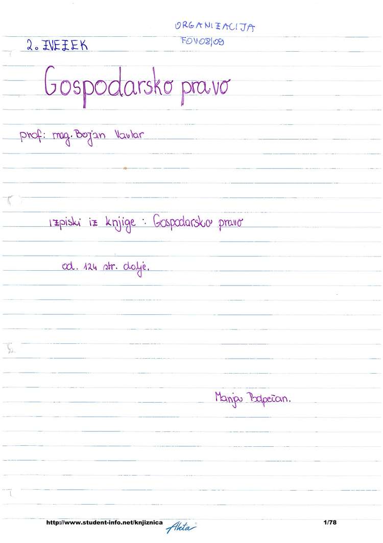 Umb fov gospodarsko pravo zapiski po knjigi 2del 2008 09 mp
